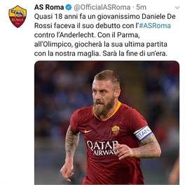 La Roma ufficializza attraverso il proprio account Twitter l'addio. A fine stagione DDR lascerà la Capitale